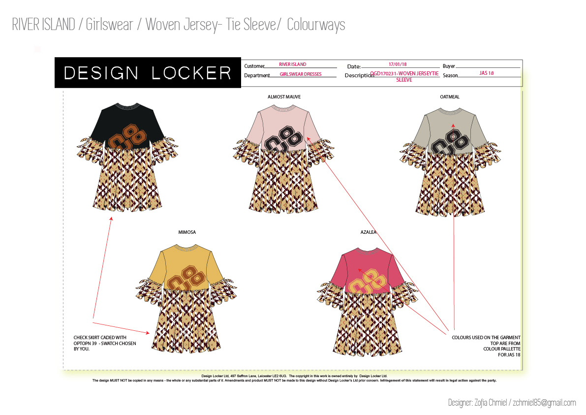 On this page, you are looking at a range of various fashion CADs development I have created whilst working for The Design Locker. Leicester. Here I am demonstrating the ability to create interesting, innovative yet commercial fashion designs for girlswear and womenswear.