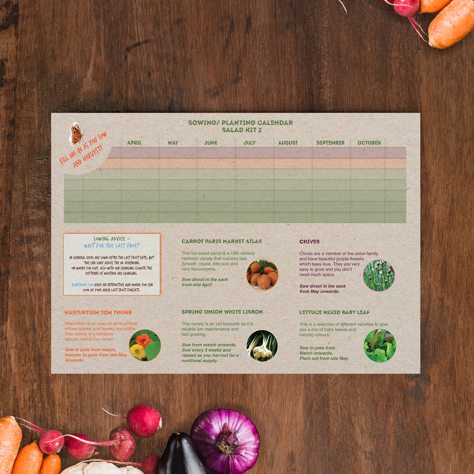 Design of various user guides, sewing & planning calendars and marketing materials for the company that makes and supplies eco growing kits designed for small spaces.